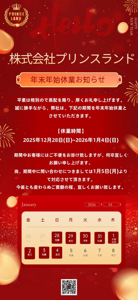 News2021.12.23PrinceLand 正月休みのお知らせ ツイート シェア はてブ 送る Pocket ツイート シェア はてブ 送る Pocket コメントを残す コメントをキャンセルメールアドレスが公開されることはありません。 * が付いている欄は必須項目ですコメント * 名前 * メール * サイト 次回のコメントで使用するためブラウザーに自分の名前、メールアドレス、サイトを保存する。
